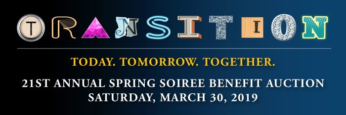 This year’s theme is “Transitions,” inspired by our transition program for students 14 years and older. When asked about CCCBSD’s transition students, Jane enthused, “We’re excited to highlight the transition students this year! They are going on incredible field trips, becoming more independent, and really getting out there. I am just in awe of what a great job they’re doing to show that there are no barriers, and I’m so proud of them!” As many of the school’s students in the transition program are learning new skills, working in off-campus jobs, and growing, the 2019 Soiree focuses on their accomplishments and hard work.